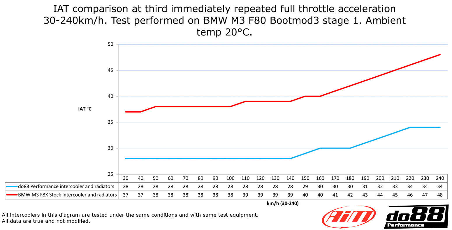 BMW M2C / M3 / M4 F8X har en dubbelturbo-motor (S55) som använder en toppmonterad vattenkyld intercooler istället för en ”vanlig” luftkyld intercooler. Original intercoolern har ett Tube & Fin cellpaket med tankar gjorda av plast som klämts fast. Denna konstruktion har sina nackdelar eftersom den är benägen att spricka och börja läcka kylvätska in i motorns insug eller läcka laddtryck ur tätningen mellan plasttankarna och cellpaketet.