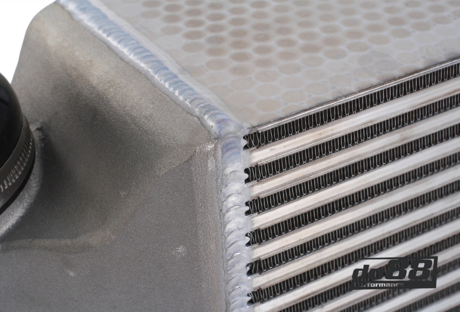 När vi lanserade denna intercooler 2016 valde vi att använda ett Tube&Fin-cellpaket som erbjöd mycket bra kylning tillsammans med ökat flöde och låg vikt. Denna uppsättning har visat sig mycket effektiv genom åren och återfinns i flera 1000-hästarsbyggen! Hösten 2021 är det dags för nästa fas i do88:s ständiga utvecklingsarbete. Efter utförliga tester under krävande förhållanden sommaren 2021 har vi valt att erbjuda denna produkt med ett Bar&Plate-cellpaket från erkända Garrett. Detta lyfter en redan konkurrenskraftig produkt till nästa nivå!