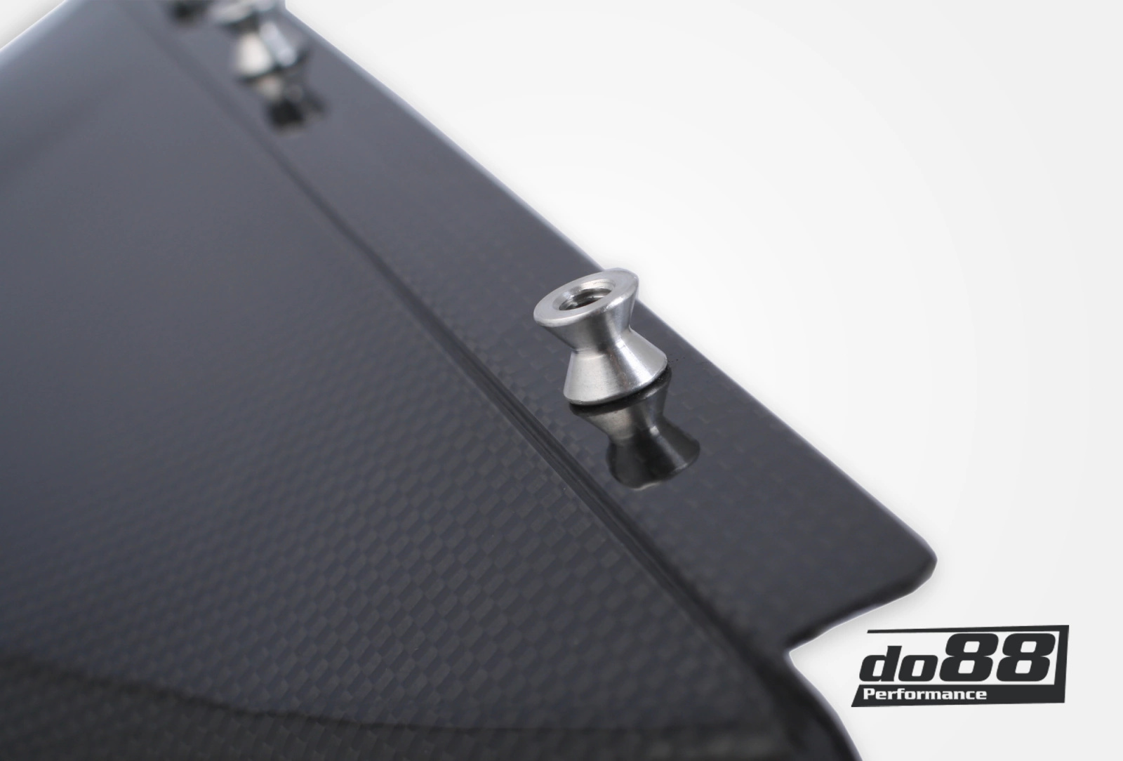 Cellpaketet är nytt, men tankar, slangar och tillbehör är samma som innan. För att verkligen kunna distribuera flödet över hela cellpaketet använder vi gjutna, flödesverifierade tankar. En väldesignad tankform är avgörande för att helt kunna dra nytta av värmeöverföringsegenskaperna samt för att maximera flödet. Flöde och kylning är också direkt beroende av cellpaketets storlek och för att kunna använda ett så tjockt paket som möjligt ersätts de övre luftstyrningarna med kolfiberstyrningar, designade av do88 med 3D-scanning som grund. Detta garanterar passform mot både bilens konstruktion samt våra grövre intercoolers. För att maximera effekterna av värmeöverföringen levereras dessa luftstyrningar med ordentliga tätningslister mot både laddluftkylare och kaross, så att den kylande luften inte tar lättaste vägen förbi cellpaketet. Anslutningarna på intercoolern är hela 70 mm för att maximera flödet samt eliminera flaskhalsar i systemet. Detta medför att denna sats levereras med nya slangar på alla fyra positioner, samtliga designade och CFD-testade för optimalt flöde. Slangarna på turbokompressorns utlopp är tillverkade av material med särskilt hög värmetålighet, klassade till 240°C ihållande temperatur.