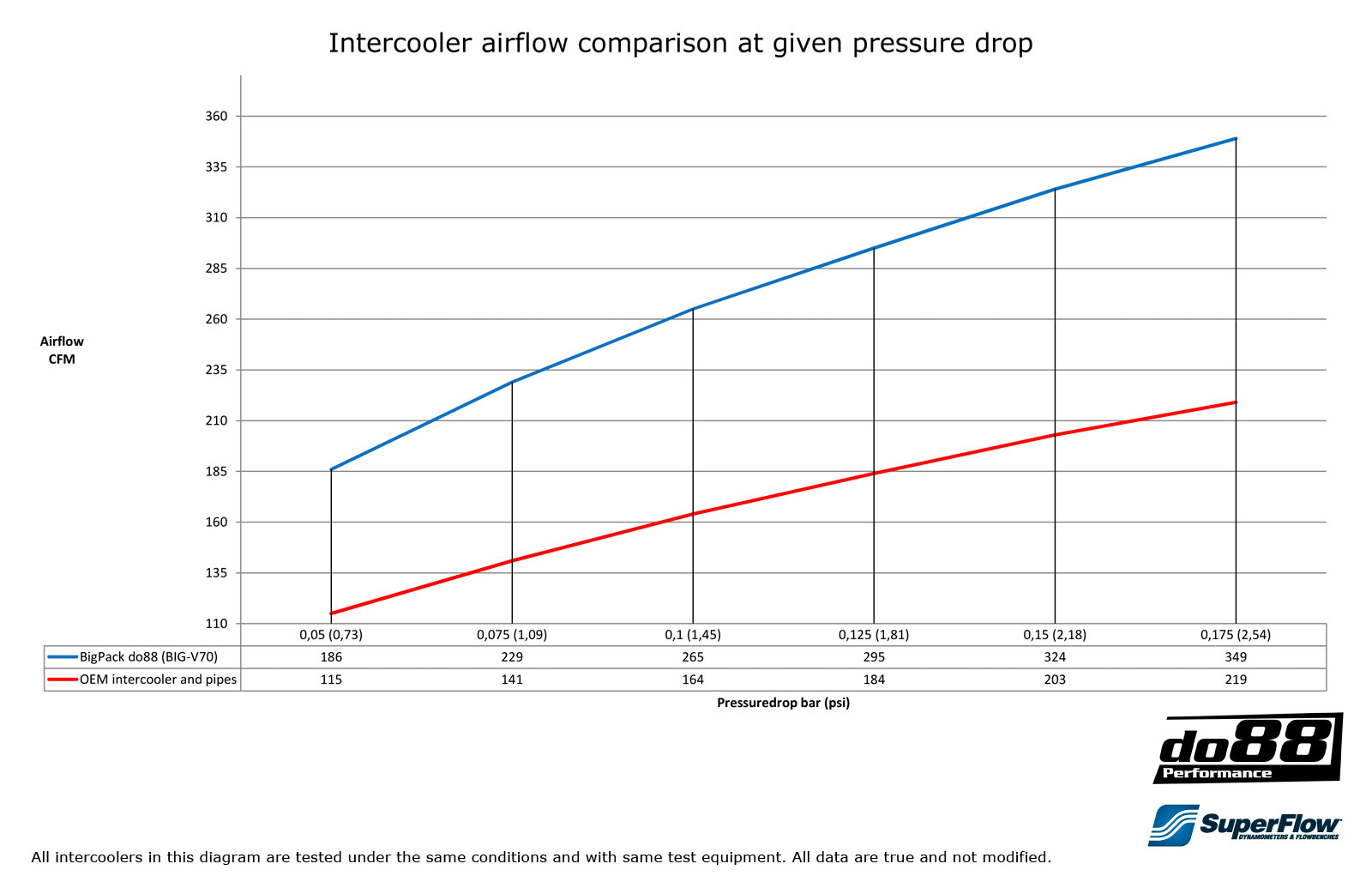 En vanlig misoppfatning er at man ikke kan få god kjøleeffekt av en intercooler med original plassering, og at en frontmontert intercooler/FMIC er mye bedre. Men i virkeligheten er do88 BigPack langt bedre enn de fleste FMIC-installasjoner der man bare får plass til en cellepakke med et altfor lite kjøleareal, ofte også med en lufttilførsel som er delvis blokkert, f.eks. av en støtfanger, noe som i mange tilfeller kan gi dårligere kjøleeffekt enn den originale intercooleren.