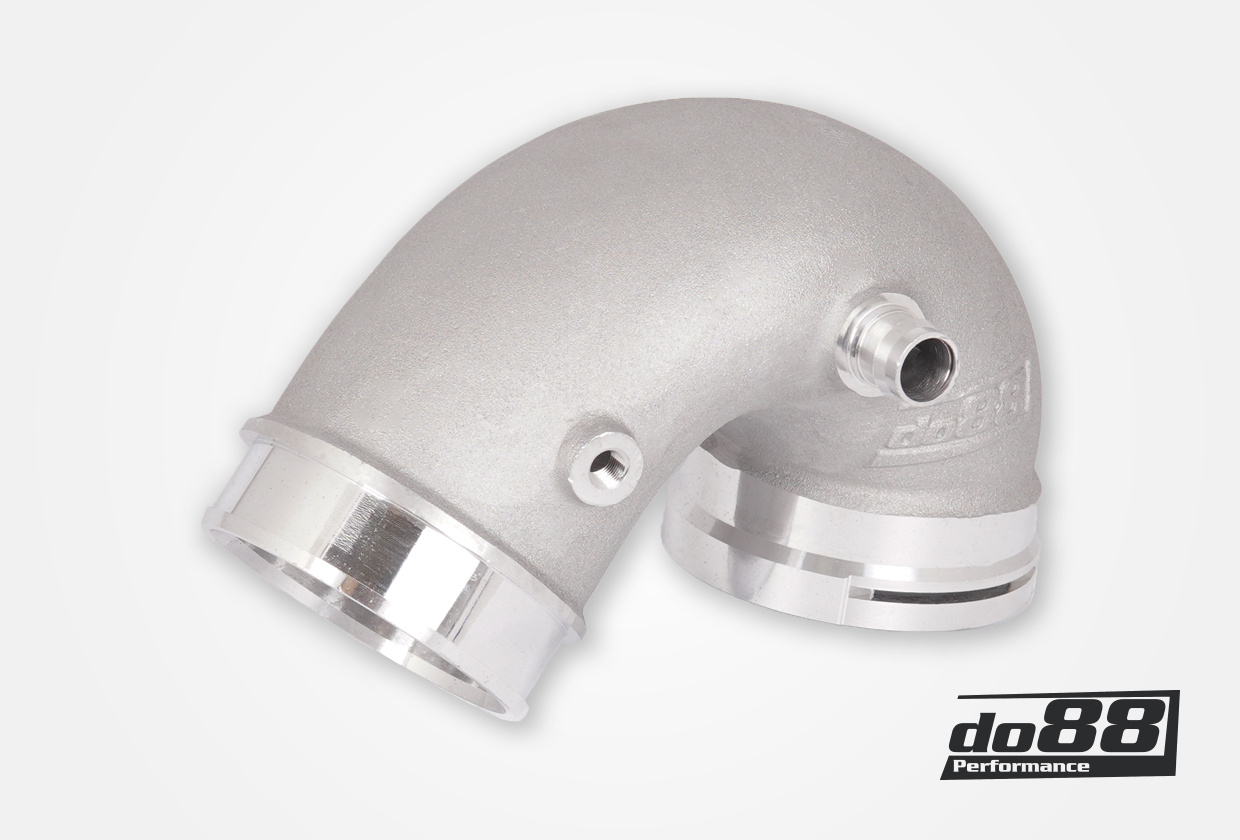 Vår slutgiltiga produkt är ett superstarkt gjutet aluminiumrör som förbättrar luftflödet. Röret har en friforms design med samma diameter hela vägen till spjällhuset vilket skulle vara ”omöjligt” att göra med ett bockat aluminiumrör. Vårt rör är försett med två anslutningar för metanolinsprutning (1/8 – 27 NPT) som är pluggade vid leverans om du inte önskar använda dessa. Vi inkluderar även en tålig silikonslang som ansluter vårt tryckrör mot intercoolern. För en snygg diskret look skickar vi med mattsvarta slangklämmor. För att ersätta den klena plastremsan som låser röret mot spjällhuset har vi valt att skicka med ett robust C-clips i rostfritt stål.