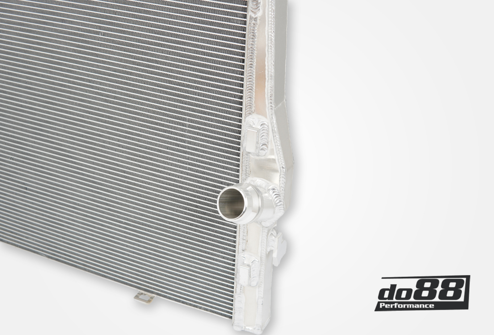 Denne radiator er konstruert for best mulig kjøleevne under krevende forhold. Den er laget av rent aluminium med helsveisede sømmer, noe som garanterer holdbarhet og utholdenhet når det virkelig trengs. Det utvidede cellepakkevolumet forbedrer kjøleevnen og senker væsketemperaturen. Ettersom dette er et høytytende do88-produkt har vi naturligvis utført grundige tester i utviklingsfasen for å oppnå best mulig ytelse. Det er ikke inngått noen kompromisser. Denne radiatoren er plassoptimalisert for montering på det opprinnelige stedet. Et naturlig valg for bilentusiasten eller for racerføreren som trenger svært høy pålitelighet. Vi kan trygt si at denne radiatoren er M3-en verdig. Aldri mer forskjøvne plastgavler – velg do88 allerede i dag!