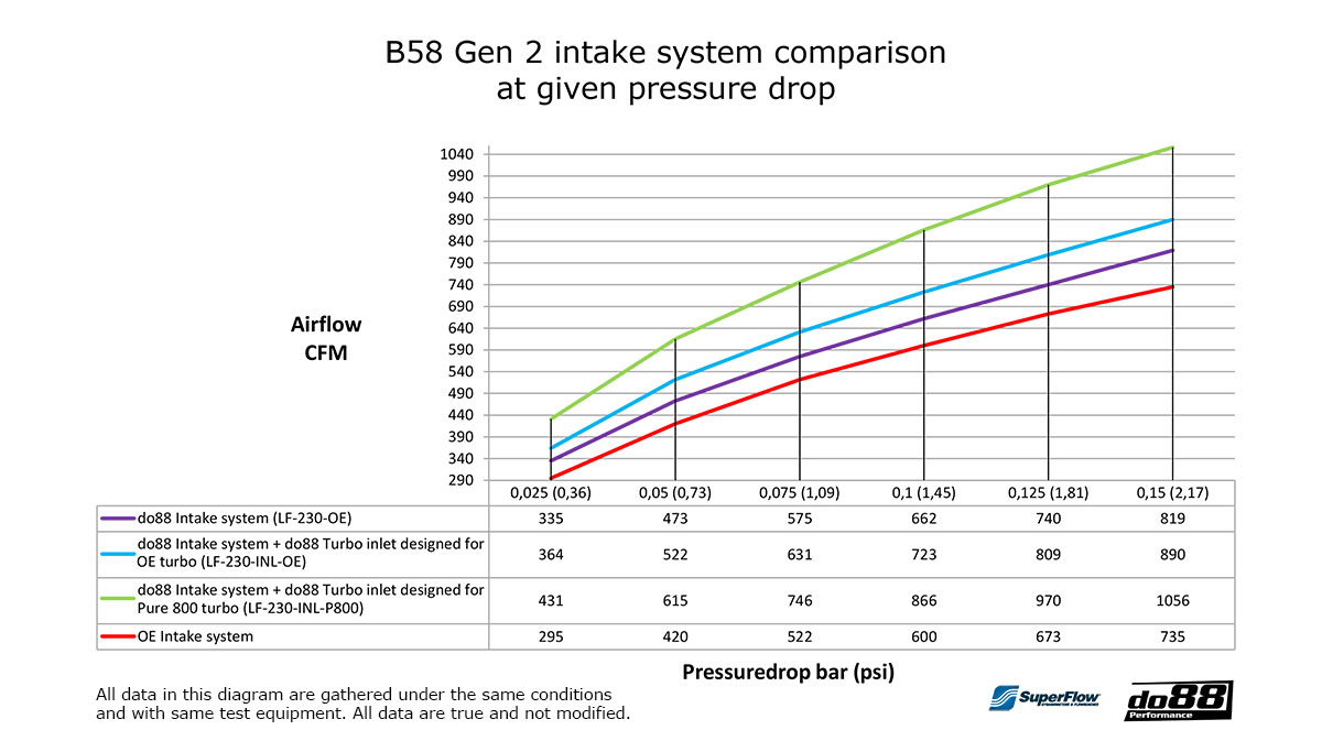 Vårt do88 inntakssystem er utviklet for å gi god filtrering, forbedret luftstrøm og samtidig opprettholde lave inntakstemperaturer. En utfordring med B58s inntakssystem er plasseringen, den er rett ved siden av manifolden som raskt gjør denne posisjonen i motorrommet veldig varm.