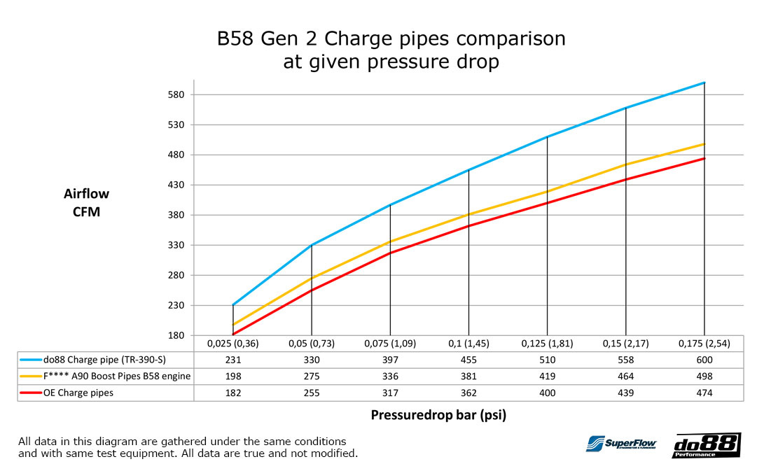 Det finnes mange ettermarkedstrykkrør for B58-motoren på markedet, men etter vår mening er de fleste ikke riktig utformet. De fleste konkurrentene har laget et veldig enkelt design der nedre og øvre trykkrør er forbundet med en rett reduserende silikonslange. Det er åpenbart at de ikke har forstått at denne slangekoblingen må være litt fleksibel for å imøtekomme den termiske bevegelsen mellom rørene. Denne vanlige utformingen vil mest sannsynlig forårsake problemer med at slangen sklir av slangekoblingene da den ikke tillater bevegelse fra temperaturendringer. En naturlig løsning på dette problemet er at folk strammer til slangeklemmene, men dette vil i de fleste tilfeller ødelegge og deformere slangeforbindelsen på røret, og gjøre rørene ubrukelige.