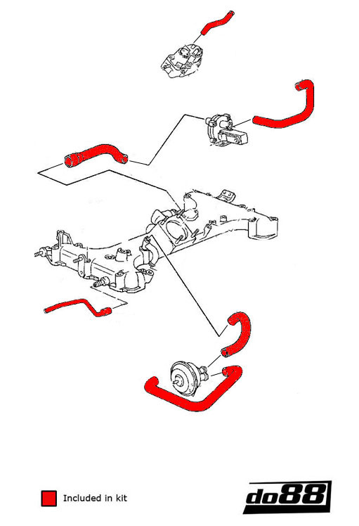 Et egenutviklet slangesett fra do88 som erstatter originalslanger til tilleggsluftregulatoren og vakuumklokken under innsuget!