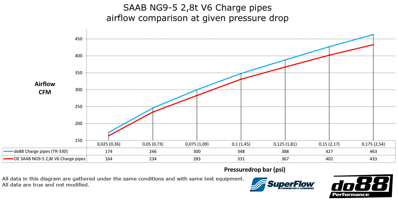 Denne pakken er til deg som har høye effektmål, og som vil oppgradere til det absolutt beste! Intercooler røret vårt har betydelig bedre gjennomstrømning enn det originale intercooler røret, noe vi har verifisert både i bil og på vår egen SuperFlow SF-1020 testbenk.