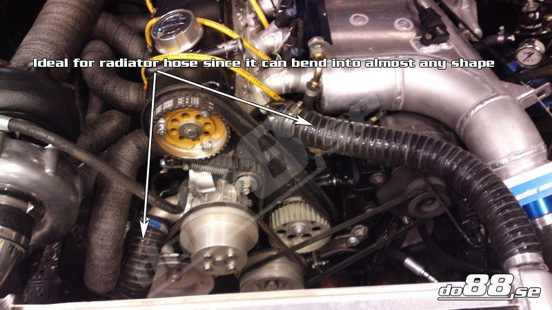 Til forskjell fra vanlige silikonslanger er denne fleksible slangen laget med en innvevd stålspiral i armeringen. Dette gir slangen en utmerket fleksibilitet og et høyt sprengtrykk. Slangens utside er ikke glatt, som en vanlig silikonslange, men har spor på overflaten som går som en spiral langs hele slangen. Dette sporet gjør det lettere å bøye slangen.