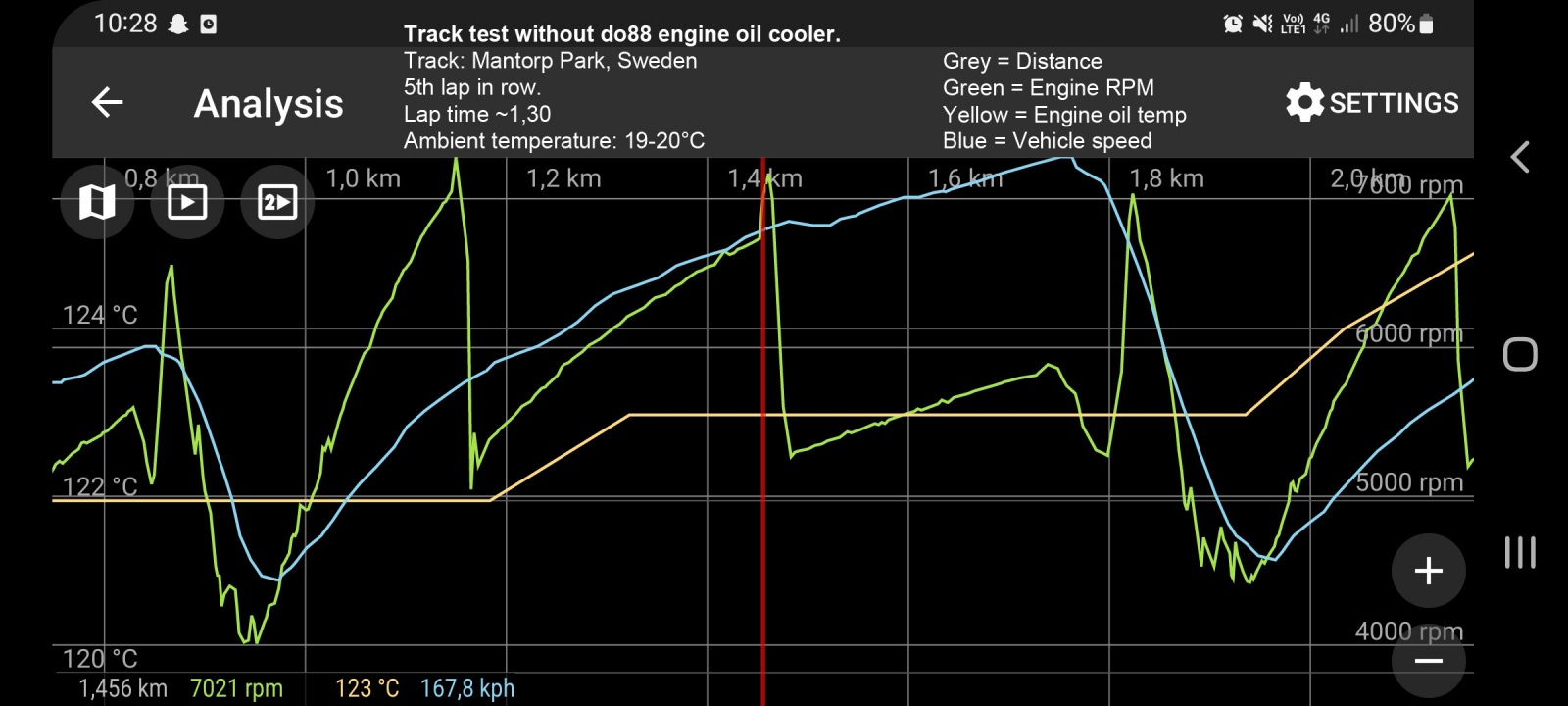Do88 Yaris GR performance oppgraderingsoljekjølersettet er designet for å opprettholde en sunn motoroljetemperatur selv under tung belastning som banekjøring. Dette er virkelig nødvendig ettersom for høye oljetemperaturer kan skade motoren, og under banekjøring vil oljetemperaturen være for høy og bare fortsette å stige. I samme scenario med do88 racing oljekjøler installert, vil temperaturen være betydelig lavere og mer stabilisert. Under våre tester senket do88 racing oljekjøler motoroljetemperaturen med omtrent 20°C!