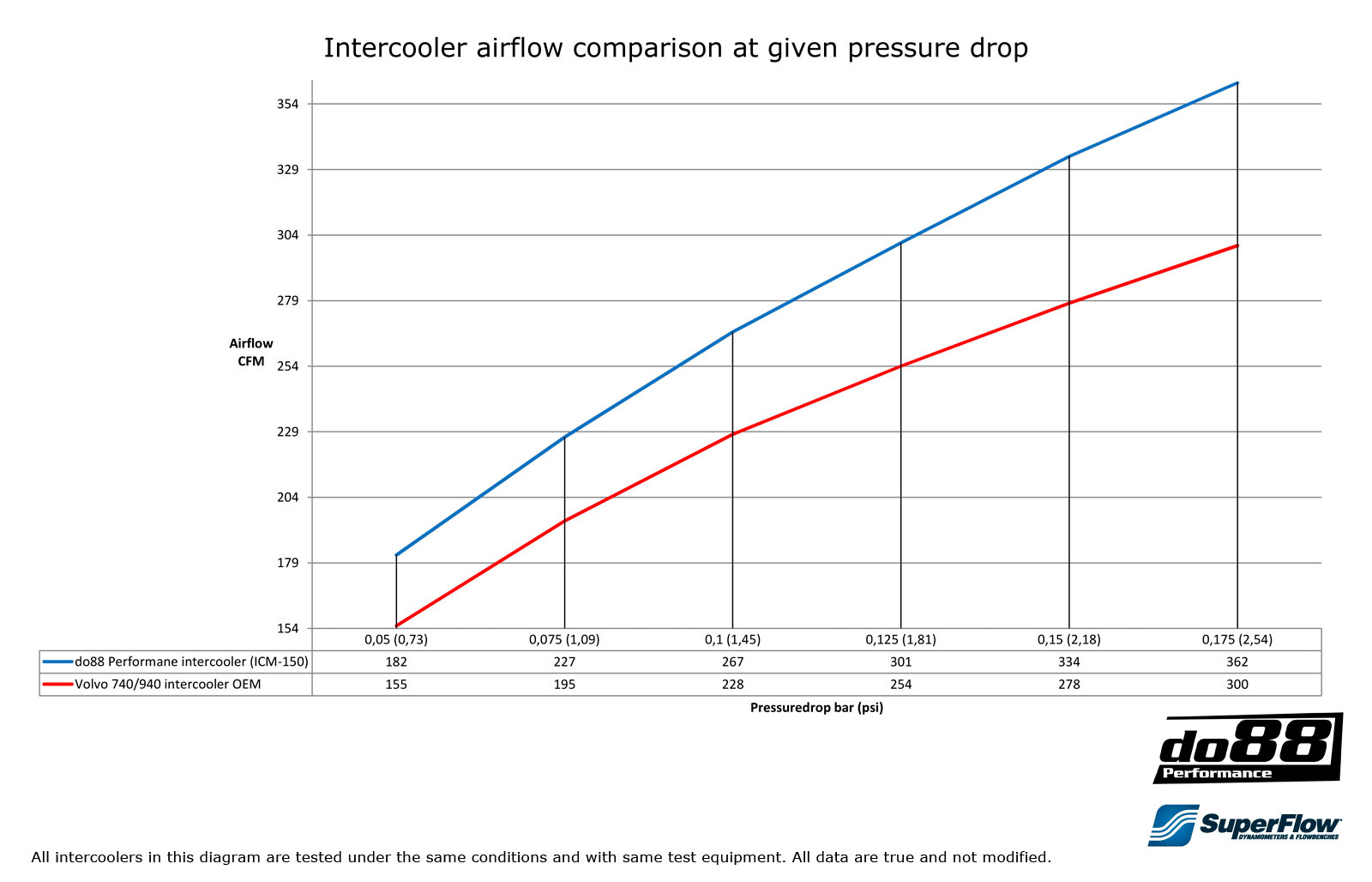 - Temperatur etter intercooler ved like testbetingelser: 28 °C (49 °C), do88 21 °C lavere!
